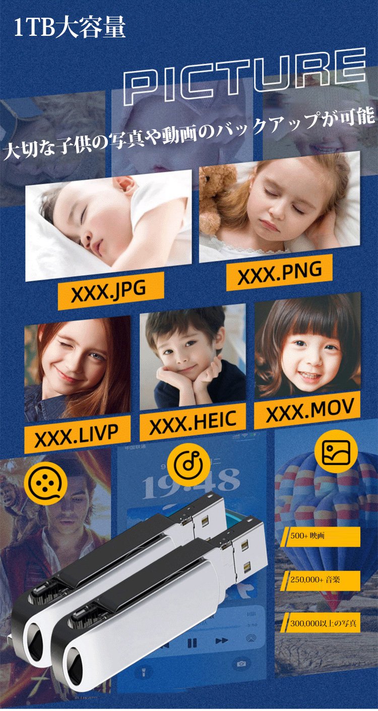 メモリクリーン不要で、スマートフォンもスムーズ!1000G!iPhone、type-C、Android、USB!高速転送、高い機密性、防水・防腐・耐衝撃!【5480円 2点目2200円】数量限定、すぐに元の価格に戻ります!